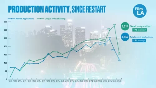 FilmLA, partner film office for the City and County of Los Angeles and other local jurisdictions–today issued an update regarding regional filming activity since the reopening of LA County to on-location filming in June. Over the last twenty-four weeks, FilmLA has received approximately 3,552 film permit applications spanning 2,514 unique… >>Read more